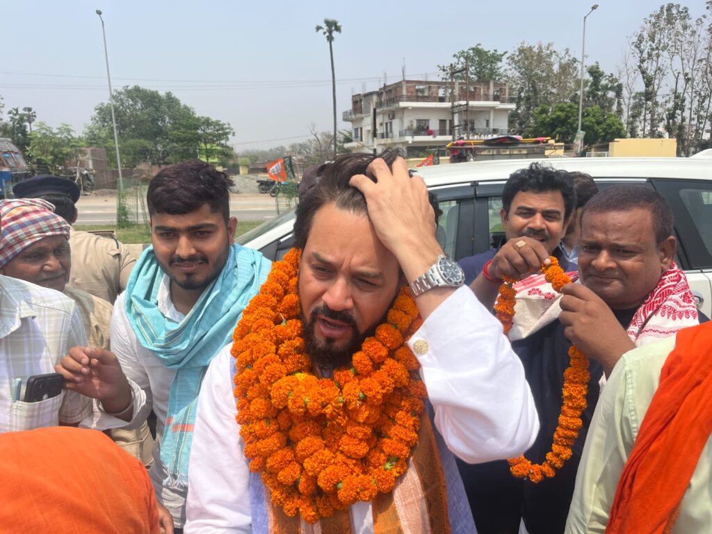 केंद्रीय मंत्री अनुराग ठाकुर अपने एक दिवसीय दौरे पर पटना पहुंचे। पटना में उन्होंने विपक्ष पर जम कर हमले किये। पटना से वे आरा में एक कार्यक्रम में भाग लेने के लिए सड़क मार्ग से गए। पटना से आरा जाने के दौरान केंद्रीय मंत्री अनुराग ठाकुर का रास्ते में कई जगहों पर कार्यकर्ताओं ने धूमधाम से स्वागत किया। अनुराग ठाकुर का स्वागत मां करनी सेना के राष्ट्रीय अध्यक्ष गोपाल संदीप सिंह के नेतृत्व में पटना के विष्णुपुरा, कोरहार, आरा के गिद्दा गांव के समीप कार्यकर्ताओं ने भव्य स्वागत किया और फुल माला पहना कर जिंदाबाद के नारे लगाये।