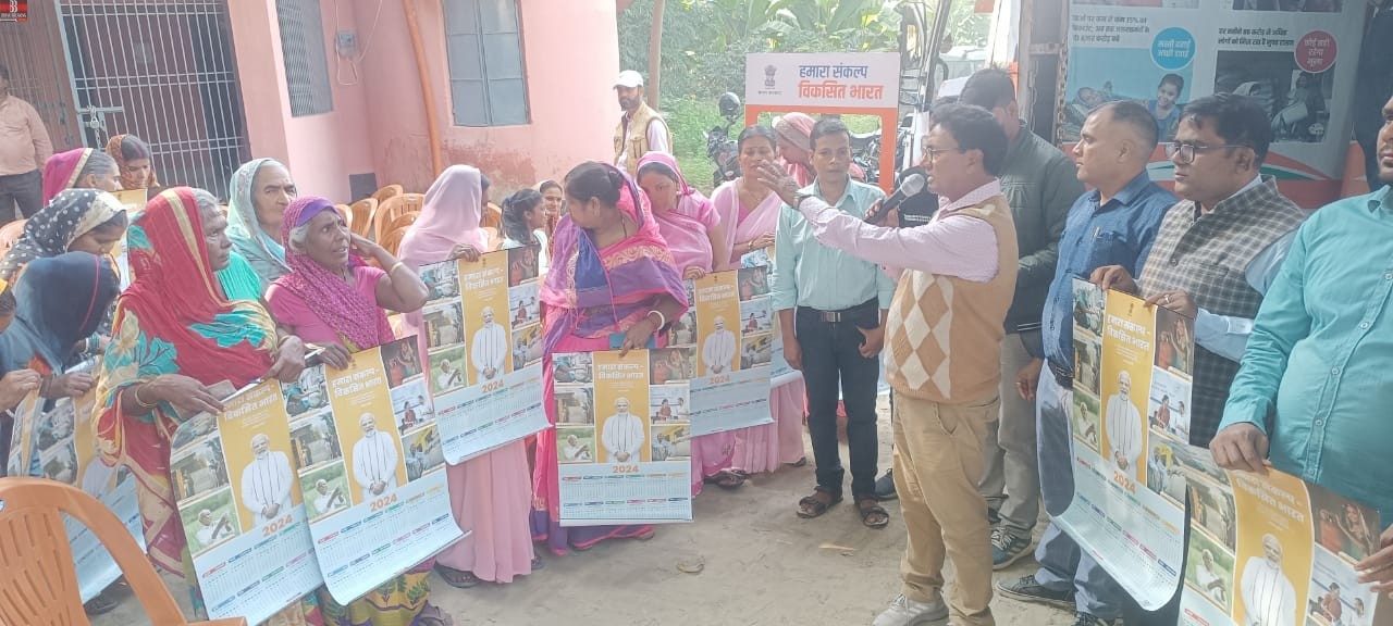 ‘विकसित भारत संकल्प यात्रा’ रथ वैशाली जिले के विभिन्न पंचायत पहुंची। केन्द्रीय योजनाओं के बारे में ग्रामीणों को दी गयी जानकारी। 2047 तक देश को विकसित बनाने के लिए ग्रामीणों ने एकसाथ ली पंच प्रण की शपथ।