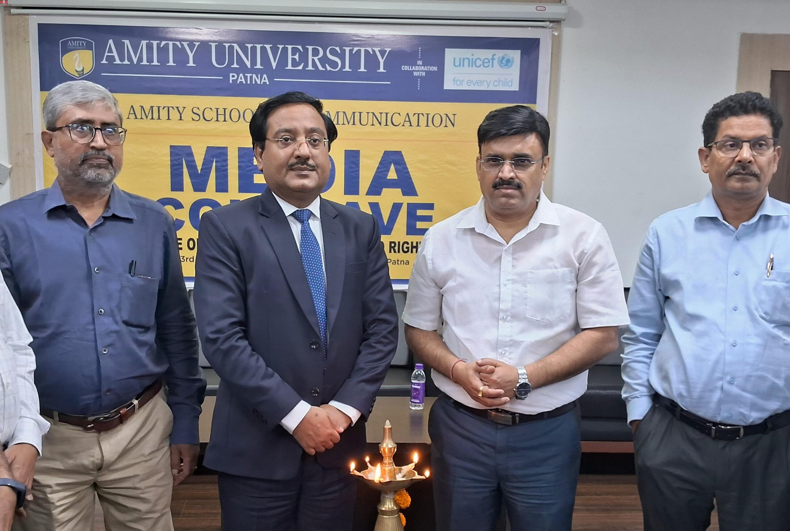 यूनिसेफ बिहार और एमिटी यूनिवर्सिटी पटना की साझेदारी द्वारा आज मीडिया कॉन्क्लेव का आयोजन किया गया, जिसमें मीडिया पेशेवरों, सरकारी अधिकारियों और छात्रों के एक विशिष्ट समूह ने बच्चों के अधिकारों के संरक्षण और संवर्धन में मीडिया की महत्वपूर्ण भूमिका का अन्वेषण किया। बिहार सरकार के सूचना एवं जनसंपर्क विभाग के संयुक्त निदेशक रवि भूषण सहाय इस कॉन्क्लेव के मुख्य अतिथि थे। मीडिया कनक्लेव का उद्देश्य मीडिया को बच्चों और किशोरों द्वारा सामना की जाने वाली विविध चुनौतियों पर गहरी संलग्नता के लिए प्रेरित करना था।