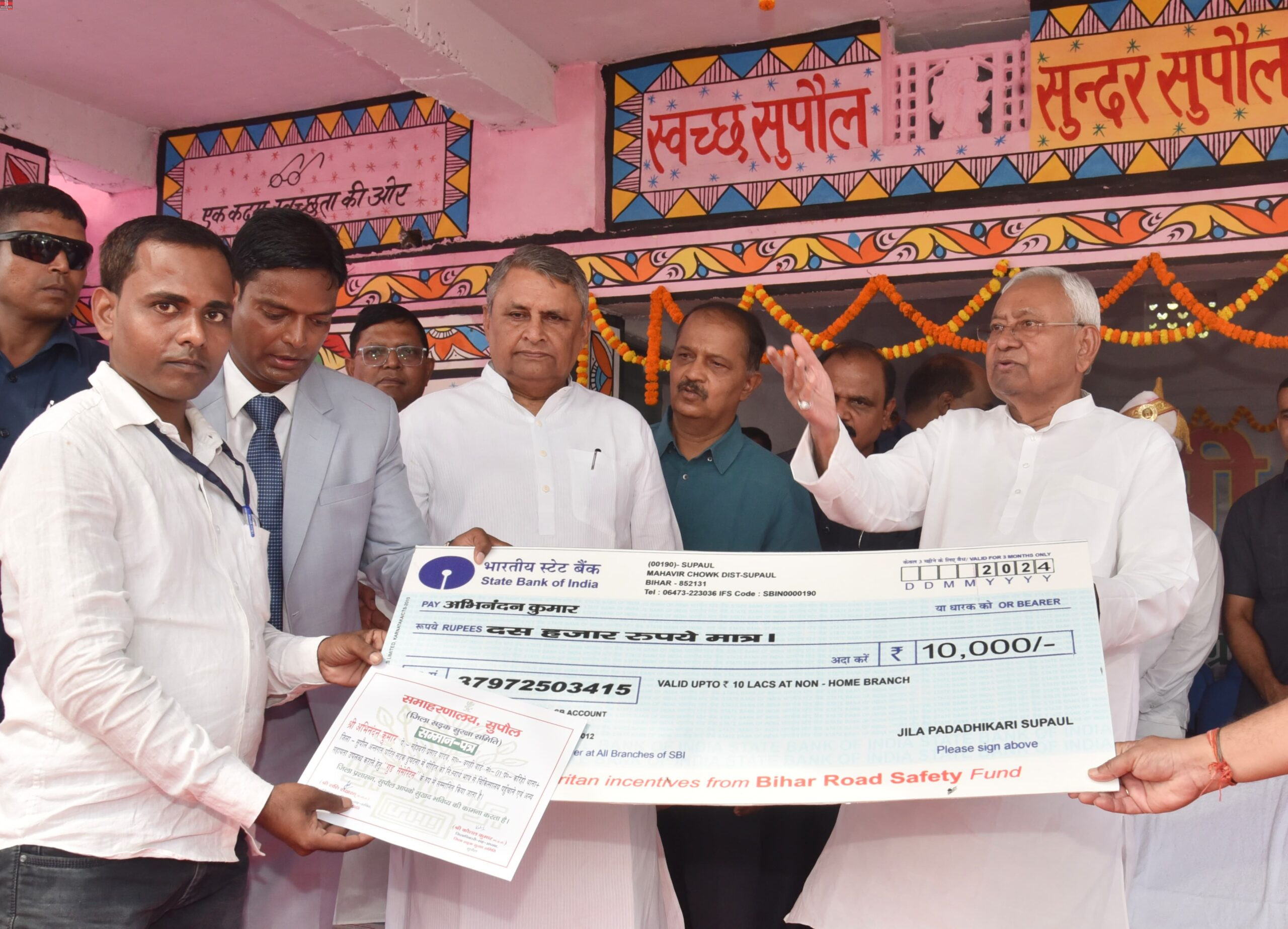 मुख्यमंत्री ने सरायगढ़ में 2990 लाख रुपये की लागत से राष्ट्रीय उच्च पथ संख्या-327ए के नवनिर्मित टू लेन आर ओ बी सह पहुंच पथ के शिलापट्ट का अनावरण कर उद्घाटन किया। सुपौल जिला अंतर्गत 3911.34 लाख रुपये की लागत से बैरिया मंच-मुंगरार पथ में नवनिर्मित पहुंच पथ सहित उच्च स्तरीय पुल का निर्माण, 1438.80 लाख रुपये की लागत से वीरपुर-बसमतिया पथ के चौड़ीकरण एवं मजबूतीकरण कार्य, 1302.20 लाख रुपये की लागत से एन एच-327ए परशरमा रोड से बी एस एस कॉलेज होते हुए चयन सिंह पट्टी तक सड़क चौड़ीकरण एवं मजबूतीकरण कार्य तथा 2639.75 लाख रुपये की लागत से एन एच-327ई से मोहनियां पी डब्लू डी पथ भाया मरीचा, जगतपुर एवं कटैया टोला पथ के चौड़ीकरण एवं मजबूतीकरण कार्य के शिलापट्ट का अनावरण कर उद्घाटन किया। इस दौरान मुख्यमंत्री ने कहा कि आज कई पथों का उद्घाटन किया गया है। इन सड़कों के बन जाने से लोगों को आवागमन में अब और अधिक सहूलियत होगी। सड़कें ठीक ढंग से मेंटेन रहे, इसका विशेष रुप से ख्याल रखें।