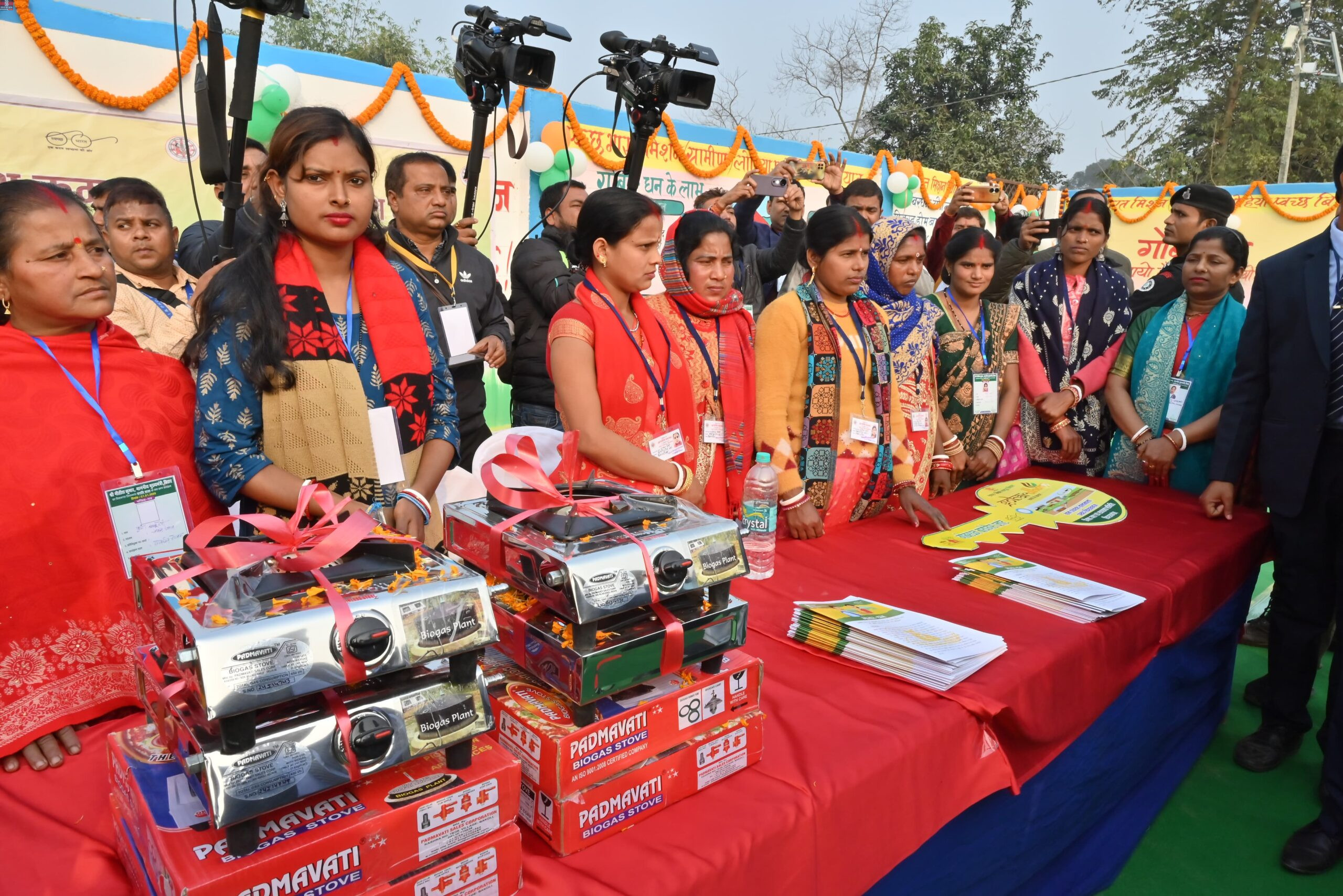 मुख्यमंत्री ने स्वास्थ्य विभाग, शिक्षा विभाग, उद्योग विभाग, समेकित बाल विकास परियोजना, कृषि विभाग, परिवहन विभाग के स्टॉलों का भी निरीक्षण किया। इस दौरान मुख्यमंत्री ने जीविकोपार्जन हेतु 11 हजार 486 स्वयं सहायता समूहों को 137 करोड़ रुपये, 2305 स्वयं सहायता समूहों को 14 करोड़ 33 लाख रुपये और 306 स्वयं सहायता समूहों को 5 करोड़ 40 लाख रुपये का सांकेतिक चेक जीविका दीदियों को प्रदान किया। मुख्यमंत्री ने मुख्यमंत्री चौर विकास योजना के तहत लाभार्थी को 4 लाख रुपये का चेक प्रदान किया। मुख्यमंत्री प्रखंड परिवहन योजना के लाभार्थियों को गाड़ी की चाबी भी प्रदान की।