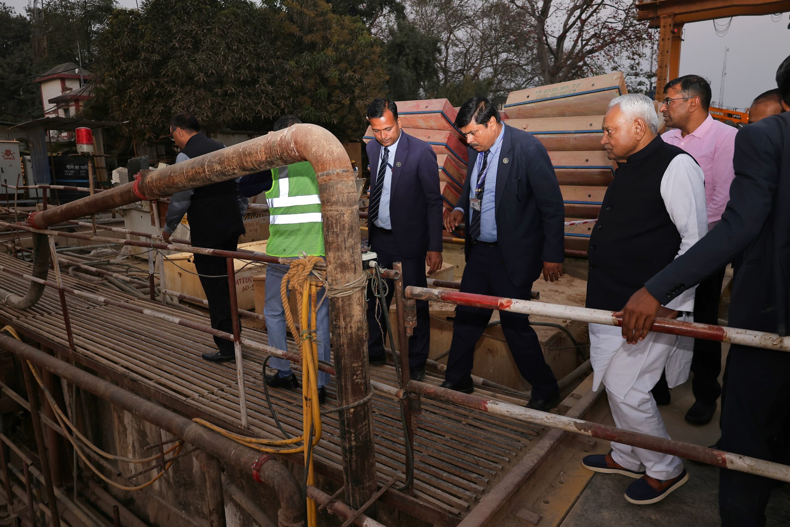 मुख्यमंत्री नीतीश कुमार ने आज पटना मेट्रो रेल परियोजना के निर्माण कार्यों की प्रगति का जायजा लिया। इस दौरान मुख्यमंत्री ने गांधी मैदान, पी एम सी एच और पटना विश्वविद्यालय के समीप पटना मेट्रो रेल परियोजना अन्तर्गत निर्माणाधीन कार्यों का स्थल निरीक्षण किया। निरीक्षण के क्रम में अधिकारियों ने पटना मेट्रो रेल परियोजना की प्रगति एवं अद्यतन स्थिति के संबंध में मुख्यमंत्री को विस्तृत जानकारी दी। इसके अलावा राजेंद्र नगर, मोइनुलहक स्टेडियम, मलाही पकड़ी, खेमनीचक, पहाड़ी पर, जीरो माइल मेट्रो स्टेशन और आई एस बी टी मेट्रो स्टेशन के निर्माण कार्यों की प्रगति के संबंध में भी अधिकारियों ने मुख्यमंत्री को अवगत कराया। निरीक्षण के दौरान मुख्यमंत्री ने अधिकारियों को कई आवश्यक दिशा-निर्देश दिये। उन्होंने कहा कि कार्ययोजना के अनुरूप पटना मेट्रो रेल परियोजना के निर्माण कार्य तेजी से पूर्ण करायें। मेट्रो का निर्माण कार्य पूर्ण हो जाने से लोगों को आवागमन में काफी सहूलियत होगी, उन्हें भीड़भाड़ से छुटकारा मिलेगा।