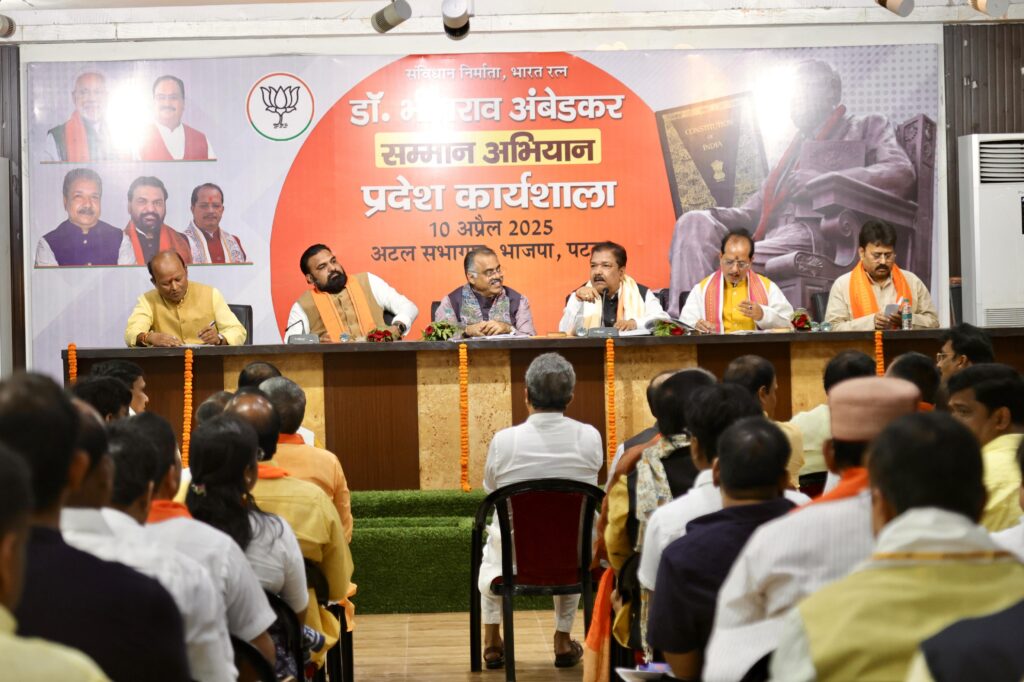 भारत रत्न डॉ भीमराव अंबेडकर जयंती सम्मान अभियान को लेकर भाजपा प्रदेश कार्यालय में कार्यशाला आयोजित।भीमराव अंबेडकर जयंती ‘सम्मान अभियान’ कार्यशाला का उद्घाटन राष्ट्रीय महामंत्री तरुण चुग और भाजपा प्रदेश अध्यक्ष डॉ दिलीप जायसवाल ने किया।अंबेडकर जयंती पर बड़े स्तर पर कार्यक्रम आयोजित करेगी भाजपा: डॉ दिलीप जायसवाल। बाबा साहेब के आदर्शों और कार्यों से सीखकर राष्ट्र की सेवा करने की प्रेरणा और बलवती होती है: डॉ दिलीप जायसवाल। भीमराव अंबेडकर को सम्मान देने का काम कर रही एनडीए सरकार: सम्राट चौधरी। कांग्रेस ने हमेशा संविधान और इसके रचयिता का अपनी वाणी और कर्म दोनों से उल्लंघन और उपहास किया: विजय सिन्हा।
